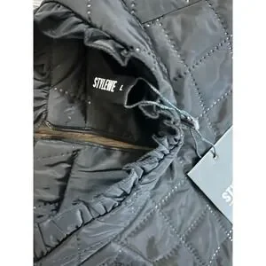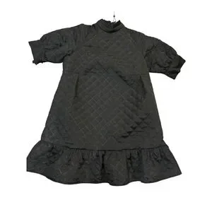 NWT STYLEWE Quilted Puffer Dress Black Puff Sleeve Ruffle Hem Mock Neck L