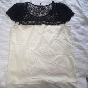 Express Women's Lace Shirt Black & Cream Size Small Business Formal Office