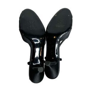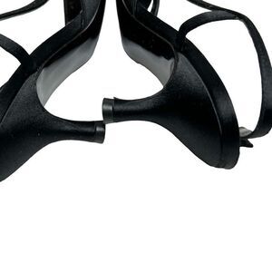 Stuart Weitzman black satin open toe rhinestone embellished heels size 8.5N