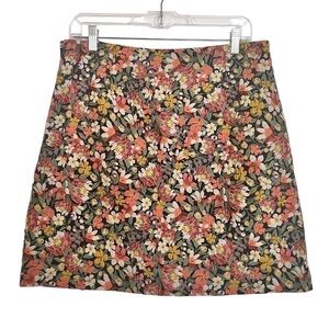 New with tags! Pink, yellow, green floral jacquard mini skirt. Has a zipper closure. In great condition.