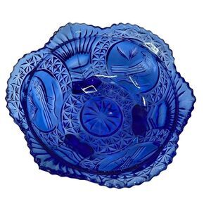 HOFBAUER Birds Cobalt Blue Glass Love Birds Candy Dish Bowl with Lid Vintage diameter: 7.5" height: 8" in great condition, noch chips or cracks!