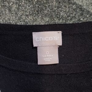 Chic black knit top from Chico's. Extremely soft and comfortable! I typically wear a size 2 or 4 and this fits me perfectly.