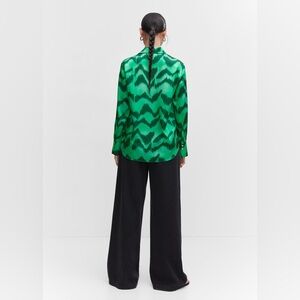 Mango green satin print shirt