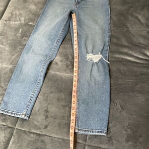 Women ReDone 90s Worn Blue Destroy High Rise Ankle Crop Slim Fit Size 6