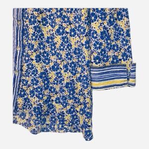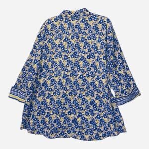 Habitat Top Womens Size XL Blue Floral Textured Button Lagenlook Artsy Casual