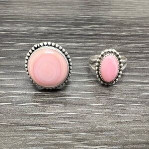 Left is adjustable. Right is size 6, Navajo Native American made, stamped Begay and Sterling. Can separate if needed but better price for both.