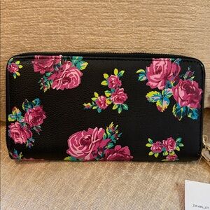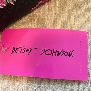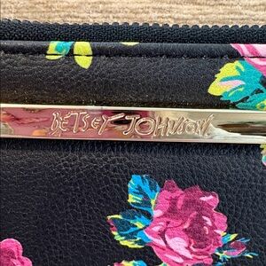 Betsey Johnson Black Wristlet with Pink and Green Floral Design