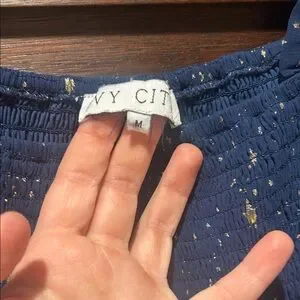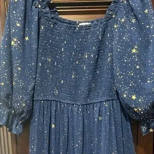 Ivy City Starry Night Stars Navy Smocked Dress M