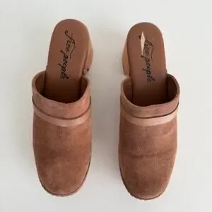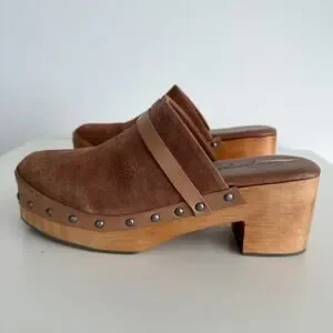 Free People Calabasas Clog Platform 40 Brown Suede Wooded Slip On Mule Stud Heel