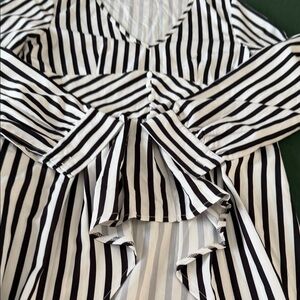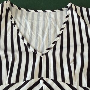 Elevate your style with this chic black and white striped cape. Perfect for any occasion, this elegant piece adds a touch of sophistication to your wardrobe.good condition