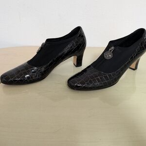 This is a pair of vintage 1991 Ros Hommerson size 9AA vegan black crocodile 2" heeled pumps with zip details in excellent condition with no flaws or blemishes and slight overall wear as seen in pictures