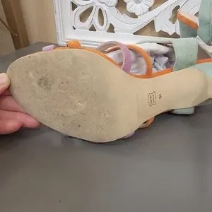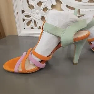 Bold orange, blue and purple straps. Strappy adjustable backstrap sandal. Perfect for anyone looking to add some fun to their wardrobe.