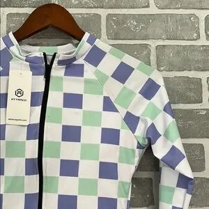Attraco‎ Sport Purple-Green Plaid Long Sleeve Swimsuit UPF50+ Rash Guard Small