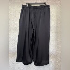 DKNY Wide Leg Cropped Satin Pants Size Large New Navy Flowy Dressy Business NWT