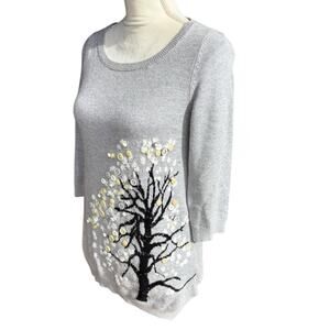 Anthro / HWR Monogram Wool Blend Cute as a Button Tree Split Hem Sweater - XS