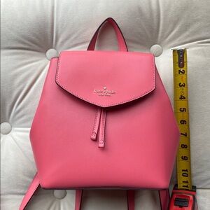 Gently used Kate Spade mini backpack. Exterior is pebbled leather and is in excellent condition. Very easy to care for and wipe clean. Interior is also in great condition. Just a few very minor spots. Hardware just has a few imperfections. Main ones are shown in photos. Strap buckles have some scratches as well. Has an interior zipper pocket and side pocket. This is still a great bag in overall excellent shape. Just shows very minor signs of use. See photos for measurements. Questions/offers welcome!