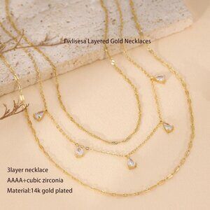 Ships quick from a smoke-free, pet-free home. Comes in a beautiful jewelry box. Customer satisfaction is our priority with a 90-day warranty. Bundle and save on your favorite accessories!"} #{} }]}##- END OF RESPONSE -## (You may ignore this line for the final output) Now write a similar description for this item using the template above: Layered Necklaces for Women Gold Plated Dainty Cubic Zirconia Choker Jewelry Package Dimensions: 2.76 X 2.76 X 0.51 Inches; 0.88 Ounces Department: Womens Color: Set3 Material: Brass Metal Type: Brass Chain Type: Cable, Cuban Gem Type: No Gemstone About this item Layered Necklaces Design:The three-layer necklace is composed of two laye