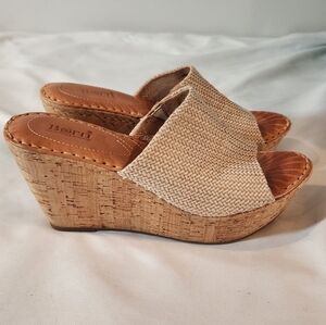 Born Peral Leather Tan Beige Cork Wedge Sandals 9M