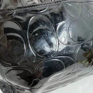Elevate your style with the Coach Signature Leah Embossed Patent Leather Shoulder Tote Bag F14663. This elegant tote features a spacious interior and a chic hang tag, perfect for any occasion. A must-have for fashion-forward individuals.