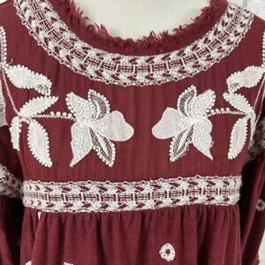 Free People Women Edie Top Size XS Short Sleeve Embroidered Floral Boho Flowy