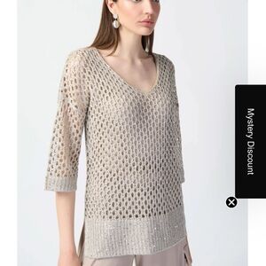 Joseph Ribkoff Light Beige Open Knit Tunic
