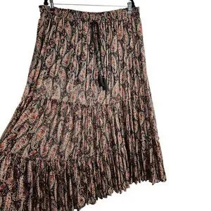 ZARA New Paisley Floral Print Metallic Boho Tiered Full Black Midi Skirt
