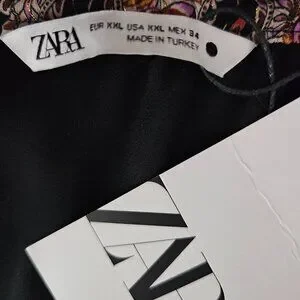 ZARA New Paisley Floral Print Metallic Boho Tiered Full Black Midi Skirt Size XXL NWT