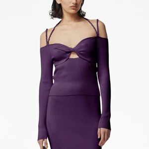 NWT Altuzurra Odin Cut-out Ribbed-Knit Top in Deep Amethyst Purple Medium
