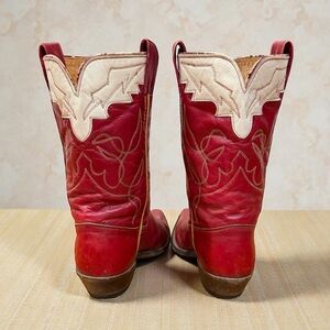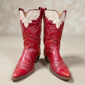 That deep red leather paired with crisp cream detailing is pure 1960s Western design—confident, expressive, and unapologetic. These boots don’t whisper; they speak. A perfect example of Frye’s early craftsmanship when everything was still built to be worn hard and last decades.