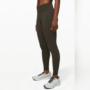 Olive green hugh waist compression pocket leggings. Size 6, 25" Inseam. Excellent condition.