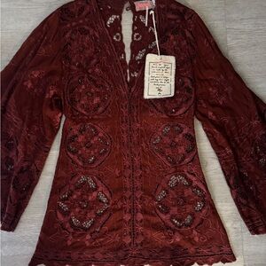 Free People NWT Cutwork Northern Lights Mini Dress Embroidered Bell Sleeve XS