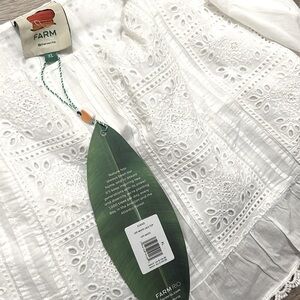 Chic white eyelet top. Features tie straps and ruffle hem. Perfect for summer. Worn once, no damage, defects or issues.