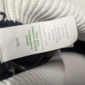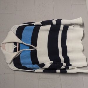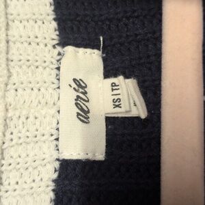Aerie 1/4 Zip Beyond Sweater, Oversized Fit Blue Stripe Cotton Ribbed Sweater XS