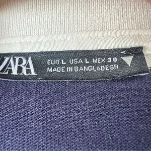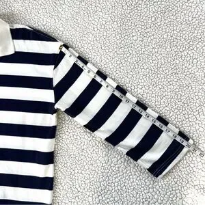 Zara Navy White Striped Long-Sleeve Cotton Rugby Preppy Polo Shirt Top SZ L
