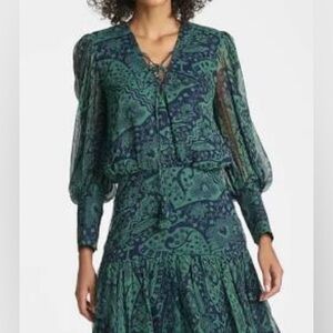 Beautiful dress with green and blue design.