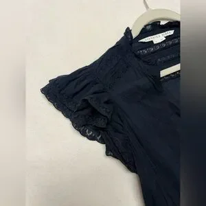 A dramatic maxi silhouette in easy cotton creates a relaxed yet statement-making look, while a thigh-high front slit adds a flirty finish. Ruffled detailing at the capped sleeves completes this partially lined style.