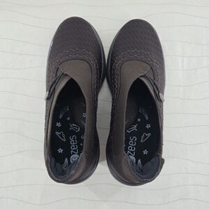 BZees Womens Energy Block Heel Brown Stretch Knit Comfort Work Shoes Size 7M