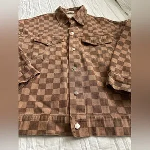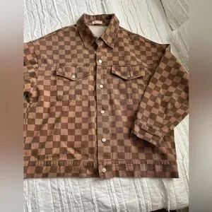 Oversized jacket by And The Why Brand, brown check pattern, silver buttons, great condition, size M