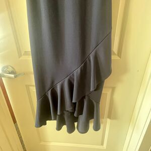 Step out in timeless elegance with this brand new with tags Enfocus Studio midi dress. Designed in a classic navy blue, this sleeveless sheath silhouette offers a flattering, streamlined fit, while the ruffle hem adds a subtle feminine touch. Perfect for work, special occasions, or evening events.