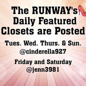 Hello PFFs!! TGIF!! Slight line-up schedule on The RUNWAY! Sat. closed, Sun. @jenn3981 will post the daily featured closets Mon. closed! Hope everyone has a great weekend! Let's kick it off by grabbing a โ๐ตand showering today's fabulous closets with lots of Poshโค๏ธ!