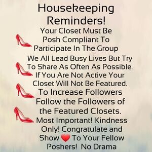 Hello PFFS!! Slight schedule change this weekend! I will post Friday's closets and @jenn3981 will post Sunday's! The RUNWAY will be closed on Saturday and Monday! Let's grab a โ๐ตand shower today's fabulous closets with lots of Poshโค๏ธ!
