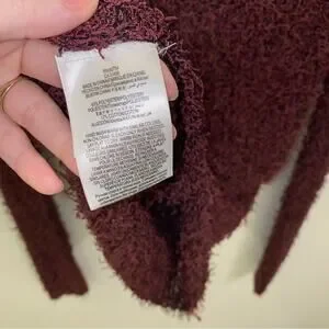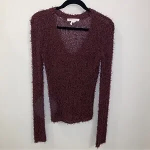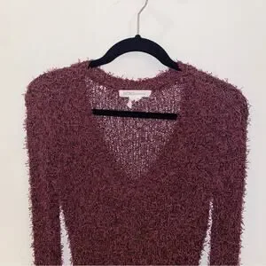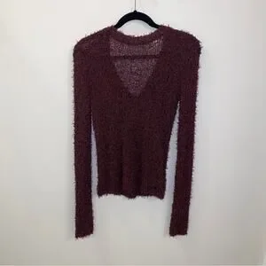 BCBGeneration Y2K sweater feathered eyelash loose knit v-neck burgundy maroon purple