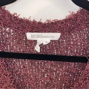 BCBGeneration feathered eyelash loose knit Y2K sweater burgundy purple XS