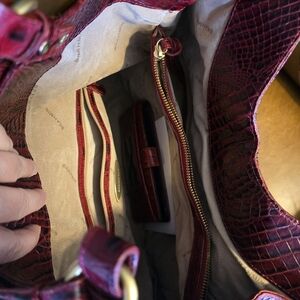 Brahmin Burgundy Crocodile Embossed Shoulder Bag
