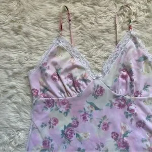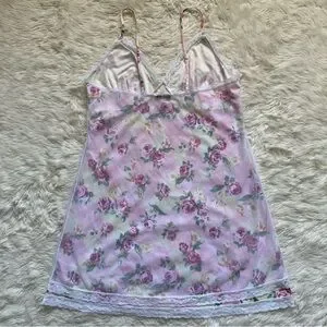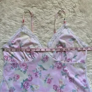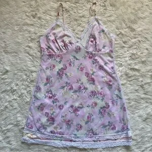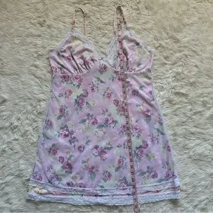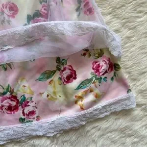 Pucker Up Slip Nightgown Sleepwear Vintage Floral Lace Pink L