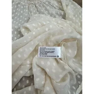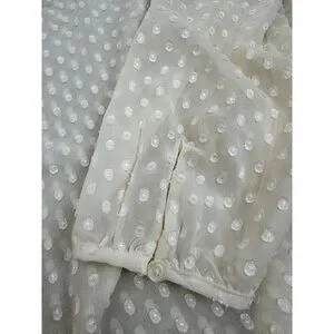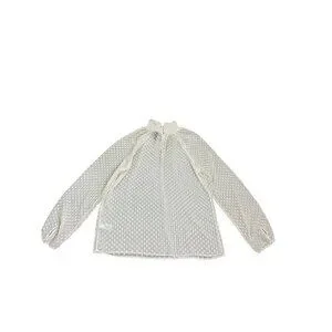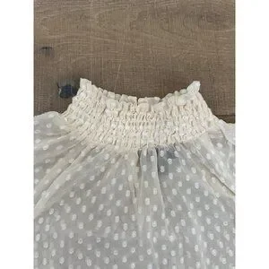 Sheer White Polka Dot Long Sleeve Blouse With Smocked Neckline M
