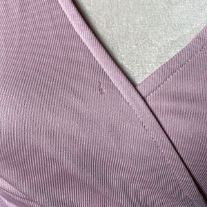 This pink full wrap dress is made with ribbed material. There are some flaws in the material, as shown in photos. But it’s still absolutely beautiful.