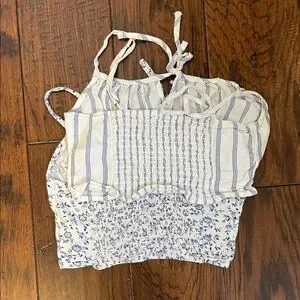 2 HOLLISTER tank tops with elastic backs. blue and cream. One stripe, one floral