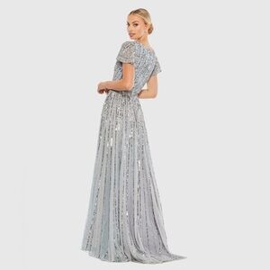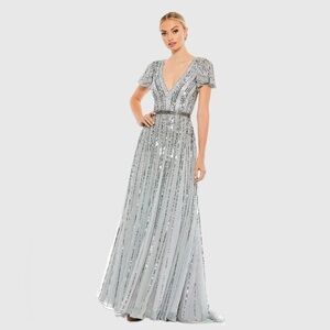 Mac Duggal 5444 NWOT Flutter Sleeve Embellished Plunge Neck A Line Gown