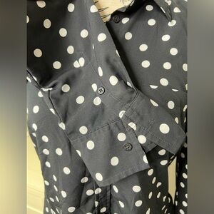 Merona Long Sleeve Black with White Polka Dots Button Down Top